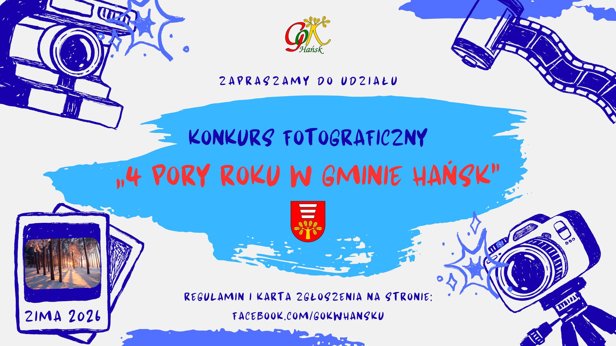 Gminny Ośrodek Kultury w Hańsku organizuje otwarty konkurs fotograficzny, którego celem jest uchwycenie piękna przyrody, krajobrazu oraz dziedzictwa gminy Hańsk w czterech porach roku.