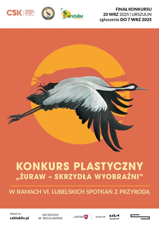 Organizatorem konkursu „Żuraw – Skrzydła Wyobraźni" jest Centrum Spotkania Kultur w Lublinie. Jego celem jest pobudzenie wyobraźni i kreatywności, a także rozwijanie zdolności plastycznych u dzieci, młodzieży i dorosłych, rozwijanie zainteresowań różnorodnymi technikami plastycznymi, zwiększenie świadomości ekologicznej i promowanie ochrony przyrody, a także zainteresowanie tematyką ornitologiczną ze szczególnym wskazaniem na ptaki z rodziny żurawi. Konkurs skierowany jest do dzieci, młodzieży i dorosłych z województwa lubelskiego.Uczestnicy konkursu mają za zadanie wykonać samodzielnie tylko jedną pracę w formacie A3 w dowolnej technice plastycznej (np. kredki, pastele, różne rodzaje farb, wyklejanka, itd.), związaną z tematem konkursu. Chęć udziału w konkursie należy zgłosić poprzez wypełnienie i przesłanie elektronicznej karty zgłoszeniowej. Jest na to czas do 7 września. Należy też dostarczyć pracę do siedziby Centrum Spotkania Kultur w Lublinie w nieprzekraczalnym terminie do 12 września.