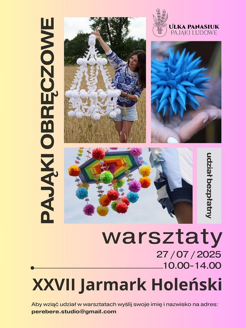 Kolejna edycja tego wyjątkowego wydarzenia odbędzie się w niedzielę, 27 lipca, w Holi w gminie Stary Brus. Rozpocznie się liturgią w cerkwi św. Antoniego Pieczerskiego, połączoną z uroczystą procesją. Na terenie skansenu rozstawione będą stoiska z wikliną, ceramiką, biżuterią, haftem, obrazami, rzeźbą, starociami, czy wyrobami z wosku, a także z regionalnymi potrawami. Jak co roku spotkać będzie można wystawców nie tylko z województwa lubelskiego, ale również świętokrzyskiego, podkarpackiego, małopolskiego, mazowieckiego, czy podlaskiego. Nie zabraknie też występów artystycznych zespołów ludowych.Dodatkową atrakcję jarmarku stanowić będą warsztaty tworzenia pająków ludowych, które poprowadzi Ulka Panasiuk w godzinach 10.00 – 14.00.