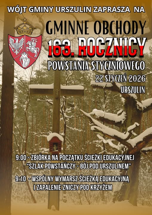 Uroczystości będą okazją do tego, aby oddać hołd bohaterom, którzy walczyli o wolną Polskę na poleskich ziemiach, jak również do refleksji nad dziedzictwem Powstania Styczniowego, uczczenia ofiary powstańców oraz przypomnienia lokalnej historii kolejnym pokoleniom. Wydarzenie odbędzie się w czwartek, 22 stycznia. Rozpocznie się o godz. 9:00 zbiórką uczestników na początku ścieżki edukacyjnej „Szlak Powstańczy – Bój pod Urszulinem”. O godz. 9:10 zaplanowany jest wspólny wymarsz historycznym szlakiem. Spotkanie zakończy się uroczystym zapaleniem zniczy pod Krzyżem Powstańczym, które są symbolem wdzięczności i pamięci o poległych.