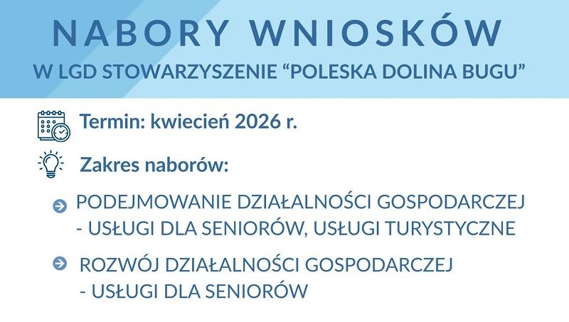 Mieszkańcy Gminy Włodawa oraz całego obszaru działania LGD Stowarzyszenie Poleska Dolina Bugu już dziś mogą rozpocząć przygotowania do planowanych w II kwartale 2026 roku naborów wniosków z zakresu przedsiębiorczości oraz rozwoju pozarolniczych funkcji małych gospodarstw rolnych.